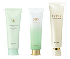肌膚的清潔保養是三重洗臉的基本,肌膚上殘存的污垢、粉刺、面皰、小皺紋、肌膚黯沈等是肌膚老化的原因。 確實的清除污垢,重視三重洗臉的NOEVIR保養程序是讓您擁有美麗肌膚的捷徑。 先取適量的清潔按摩霜(約中指一節的量),仔細均勻的推抹至全臉使肌膚內的油性污垢確實浮起。之後,以面紙輕柔地擦拭臉上的清潔按摩霜後,再使用已充份沾取潔膚露的化粧棉將肌膚上多餘的油份擦拭乾淨。最後,先以溫水將臉沾溼,再取適量泡沫清潔乳(約1公分的量)於手心,不斷以少量溫水加入手中的泡沫清潔乳使其充分起泡後,清洗臉部。細緻的泡沫可確實的包圍、清除污垢,但殘留在臉上的泡沫也會造成肌膚的乾荒,因此特別是髮際、下巴等部位,應仔細以流動的溫水沖洗乾淨。 |