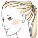 以修容刷將三色混合沾取後,以顴骨的頂點為中心輕輕刷上。
