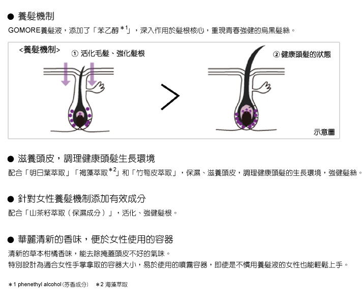 *一次噴灑過多養髪液可能造成滴落,使用時請一邊按摩均勻一邊增加使用量。