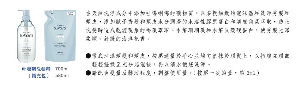 以吐噶喇海的礦物質,溫和洗淨、打造柔潤亮澤秀髮。